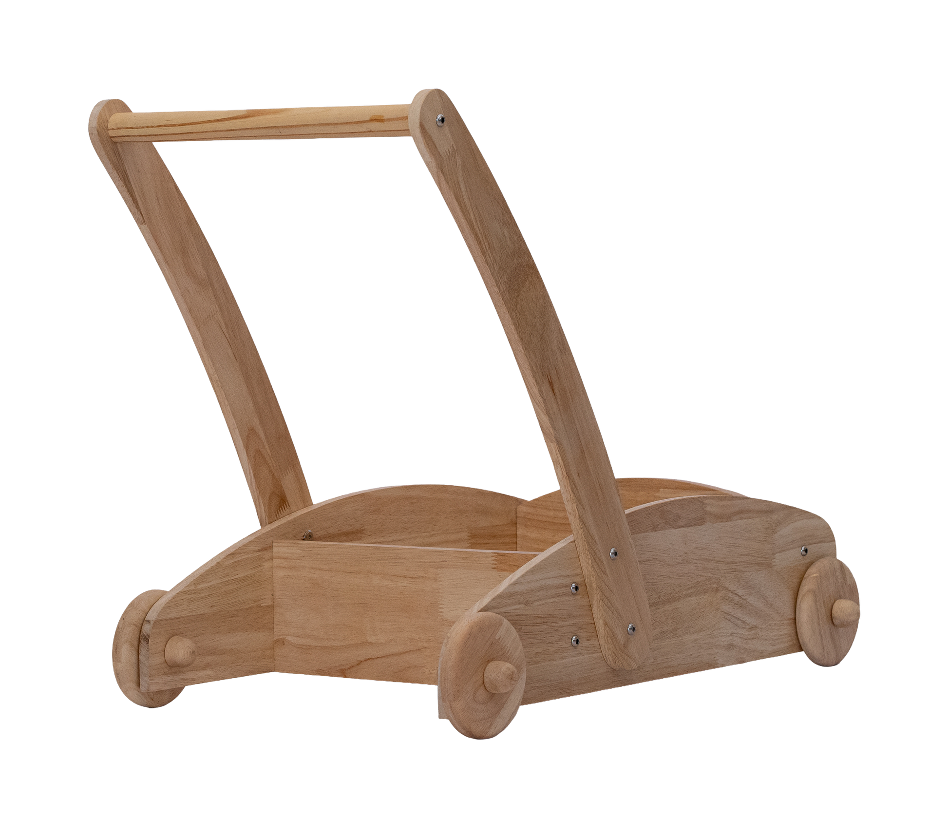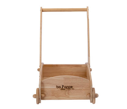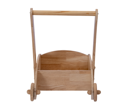 Its sturdy structure provides excellent support, while the smooth-rolling wooden wheels encourage natural movement and safe exploration. The trolley also doubles as a toy carrier, letting kids push around their favorite blocks, dolls, or books during playtime.
