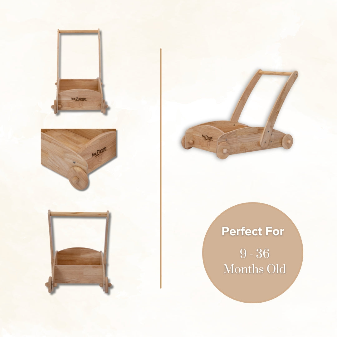 A walker that grows with your child! The Wooden Toy Cart Walker is not only a stable walking aid but also a fun little cart for carrying toys, blocks, or treasures. Handcrafted with eco-friendly wood and finished with child-safe polish, it makes your toddler’s first steps both safe and playful.
